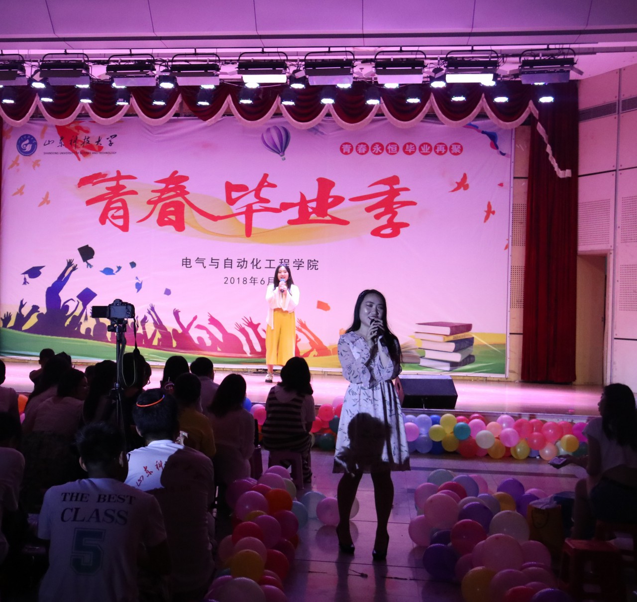 6月27日,由beat365中文官方网站团委主办、学生会文艺部承办的“青春毕业季”2018届毕业生欢送晚会在大学生活动中心二楼报告厅成功举办。beat365中文官方网站党委书记王永君、党委副书记赵健、团委书记许琳及团委多名辅导员、兼职辅导员莅临晚会,与毕业生们一同分享了这场视听盛宴。
