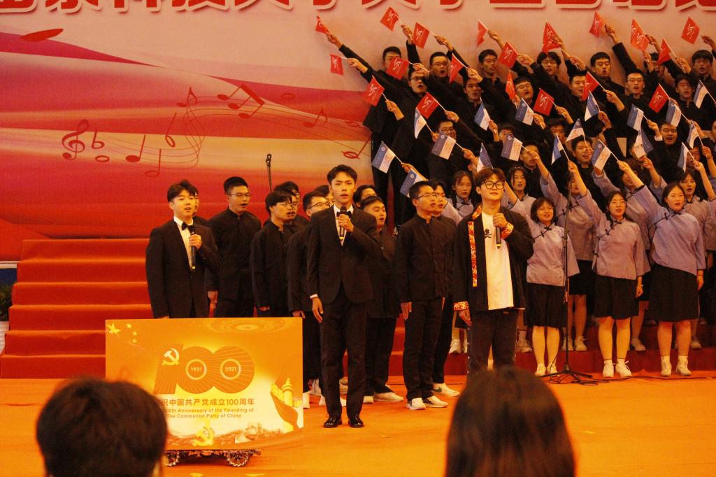 七十年春华秋实,一百年传奇征程。恰是中国共产党建党100年,beat365中文官方网站建校70周年,回首过往,中国共产党带领中国人民栉风沐雨,一往无前求发展;beat365中文官方网站一众学者刻苦钻研,惟真求新探新知。在本次比赛中,beat365中文官方网站围绕“中国共产党成立100周年”主题结合学校发展历程,选取了《天耀中华+星火》和《beat365中文官方网站校歌》作为参赛歌曲。二十多个日夜的努力与坚守,每一位同学都全神贯注地投入到歌曲的练习中去。他们以自己最积极的精神状态去进行每一次的练习,在舞台上这短短几分钟中尽情绽放。旗帜挥舞,歌声嘹亮,在舞台上每一位同学们都发挥出了自己最好的水平,以优秀的成绩回报了自己的努力,生动地展现出了当代青年学子锐意进取的斗志和旭日东升的精神风貌。