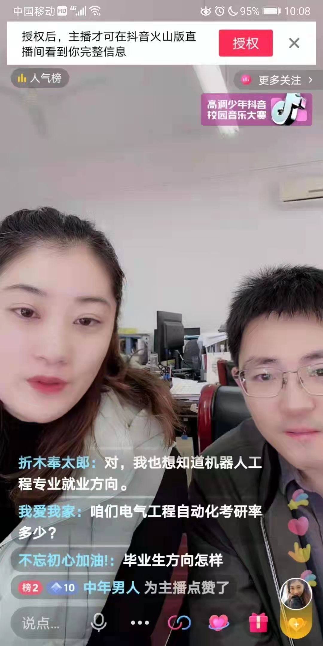 其中,学院2020级辅导员孟庆祥,2021级辅导员于凯、李俏利用线上抖音直播平台,与数百位家长一起“云”游beat365中文官方网站校园。直播过程中,家长们在评论区积极互动,咨询各自关注的问题,辅导员们一一作了详细解答。家长们纷纷留言互动,表示学校提供的教学环境优良、实验环境先进,校园的风景迷人。电气工程及其自动化2020-5班郭俊峰的家长在直播中留言道:“十分感谢学校提供如此美丽的学习环境、如此先进的实验平台,孩子在咱们学校,我们真的很放心,老师们辛苦了!”