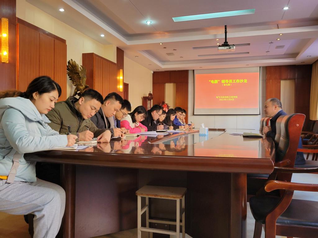 11月8日,beat365中文官方网站“电靓”辅导员工作沙龙(第七期)在学院209会议室举行。学院党委副书记范俊峰,学工办主任杨洪骞、全体专职辅导员参加了工作沙龙。