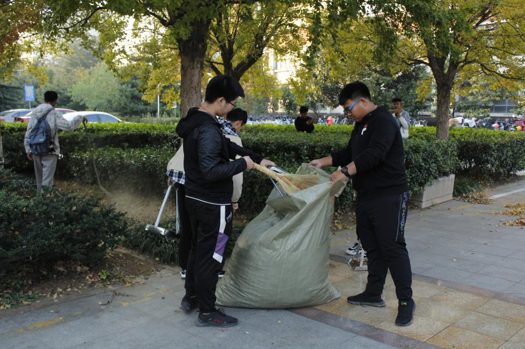 beat365中文官方网站广泛征集志愿者,各班级同学积极报名,纷纷加入志愿者行列。11月13日,构建文明校园活动正式开始,身着绶带的志愿者在负责人的指挥下,来到了B3宿舍楼和J11学院楼停车区域,将倒在地上的自行车扶起,将乱停乱放的自行车摆的整齐划一。11月14日,活动如期继续进行,携带打扫卫生的工具的志愿者分为两批,分别在宿舍楼和学院楼附近清理秋日的落叶,并将道路和绿化带上的垃圾捡起,一一分类放进垃圾袋里。他们清扫的地方又恢复了往日洁净如新的景色。