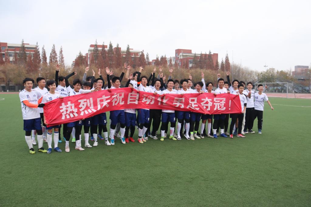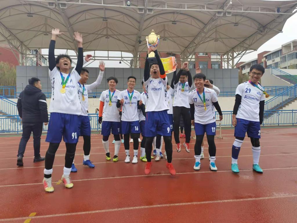 11月21日下午,“校庆杯”足球赛校赛决赛如期举行。beat365中文官方网站足球队荣获本次比赛冠军,16号球员马帅业获得最有价值球员奖,22号球员邱祯丞获得金手套奖。