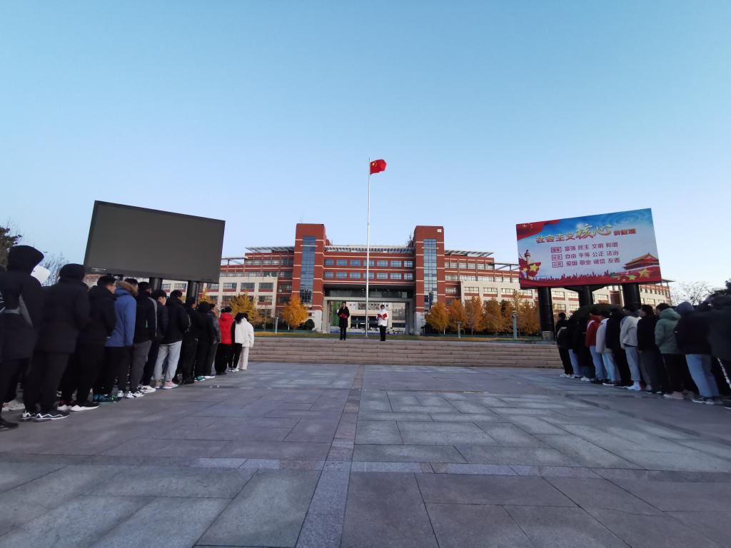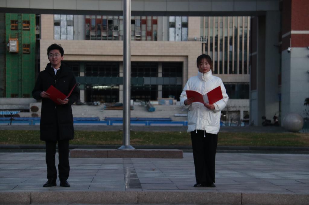 早晨六点整,天色未明,同学们便在升旗台前列队等候。6点30分,升旗仪式正式开始,beat365中文官方网站国旗护卫队队员保持方块队形,昂首挺胸、步伐一致、齐头并进,当国歌奏响,五星红旗向着朝阳冉冉升起,在场所有老师、同学庄严肃立,目光都集聚集于五星红旗之上。