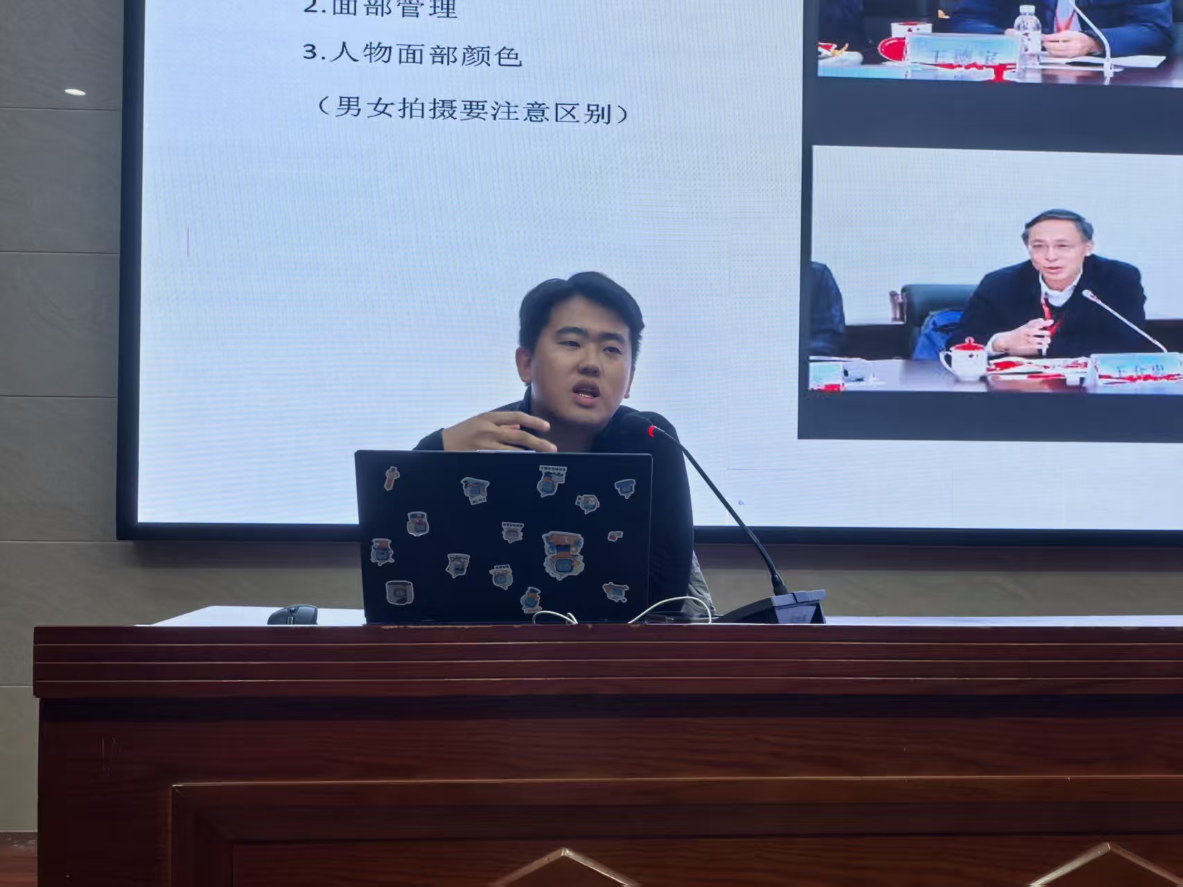 培训内容聚焦于宣传工作的实际需求,干货满满。在摄影环节,郝恩睿从基础构图法则与光线运用讲起,结合大量正反案例,深入浅出地讲解了会议、活动等不同场景的拍摄要点与技巧,强调了“主题明确、主体突出”的重要性。