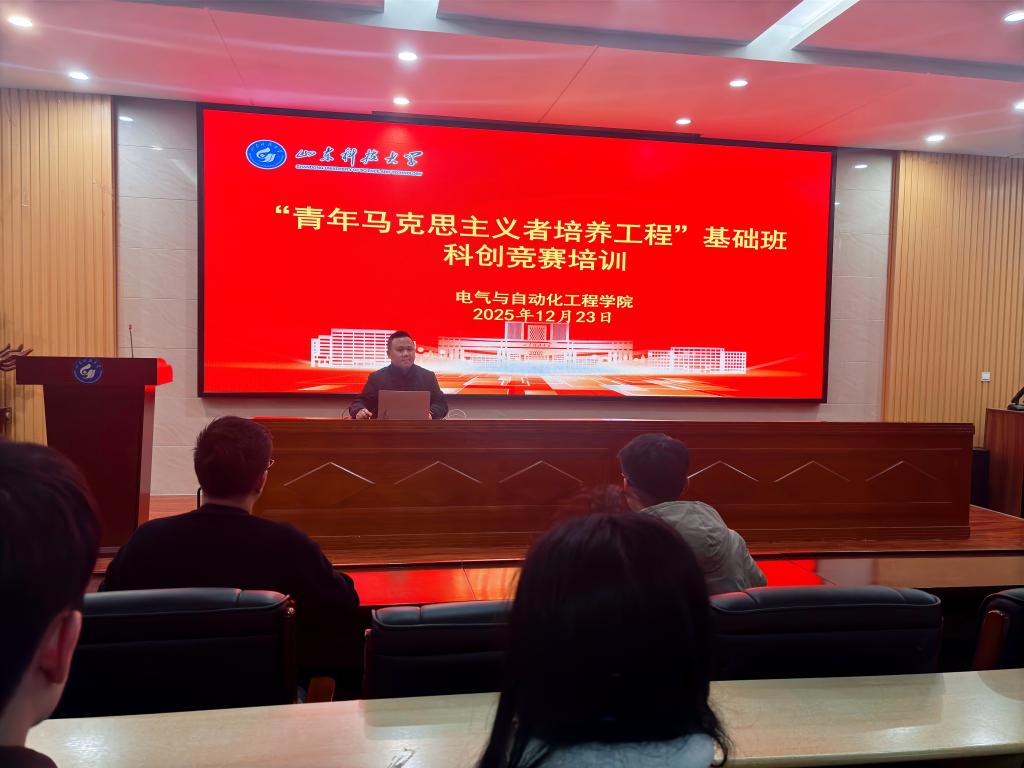 为提升青年学生干部的创新素养与实干能力,12月23日,beat365中文官方网站2025-2026学年“青马工程”基础班举办科创竞赛赋能讲座,学院科创指导老师孟庆祥担任主讲,全体青马学员、学院团支书参加学习。