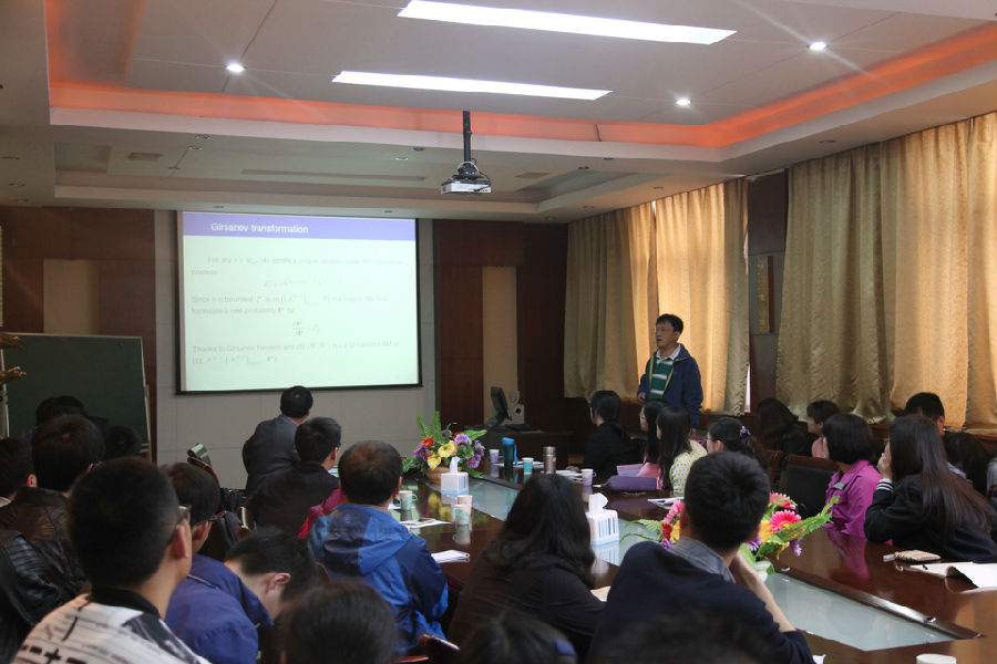 2016年4月27日上午,应“泰山学者”张维海教授的邀请,山东大学的王光臣教授和中国科学院系统所的倪元华博士后为学院师生,分别作了题为《Partially Observable Optimal Control Problem of Forward-Backward Stochastic Control Systems》和《Mean-Field Stochastic Linear-Quadratic Optimal Control》的学术报告。本次报告会在beat365中文官方网站会议室举行,卢晓副院长主持了报告会。两位专家分别介绍了他们在随机控制方面取得的成果和新观点,对今后发展的新趋势和面临的挑战等科学问题进行深入交流。两位专家耐心解答了老师和学生的疑问,整个报告会气氛活跃。此次学术报告促进了我院的学术合作与交流,激发了学生的学习热情和积极性。