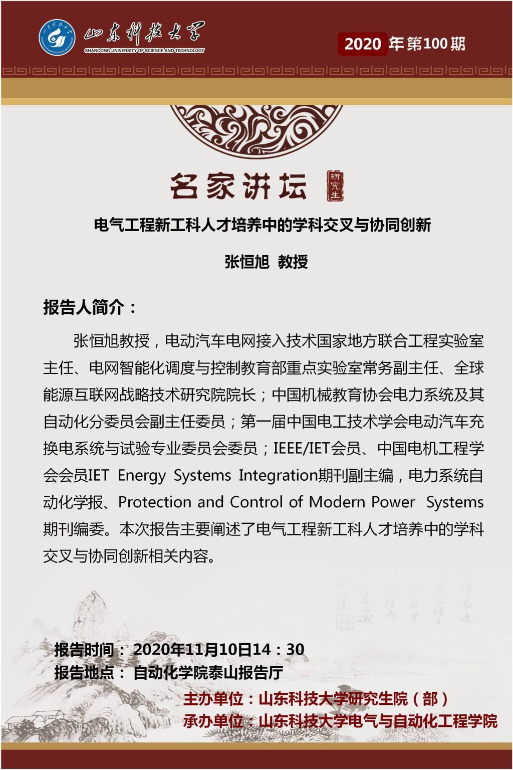 beat365中文官方网站承办第100期“名家讲坛”:张恒旭教授