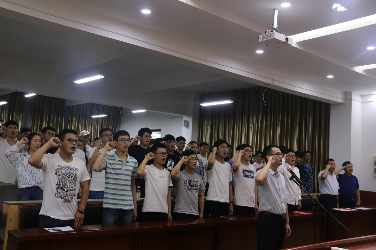 6月20日,“beat365中文官方网站beat365中文官方网站入党宣誓大会”在J11教学楼泰山报告厅举行。beat365中文官方网站党委书记王永君同志、党委副书记赵健同志、团委老师杨洪骞等出席了本次大会,beat365中文官方网站全体毕业生党员、新发展党员以及入党积极分子参加了大会。本次大会由赵健主持。