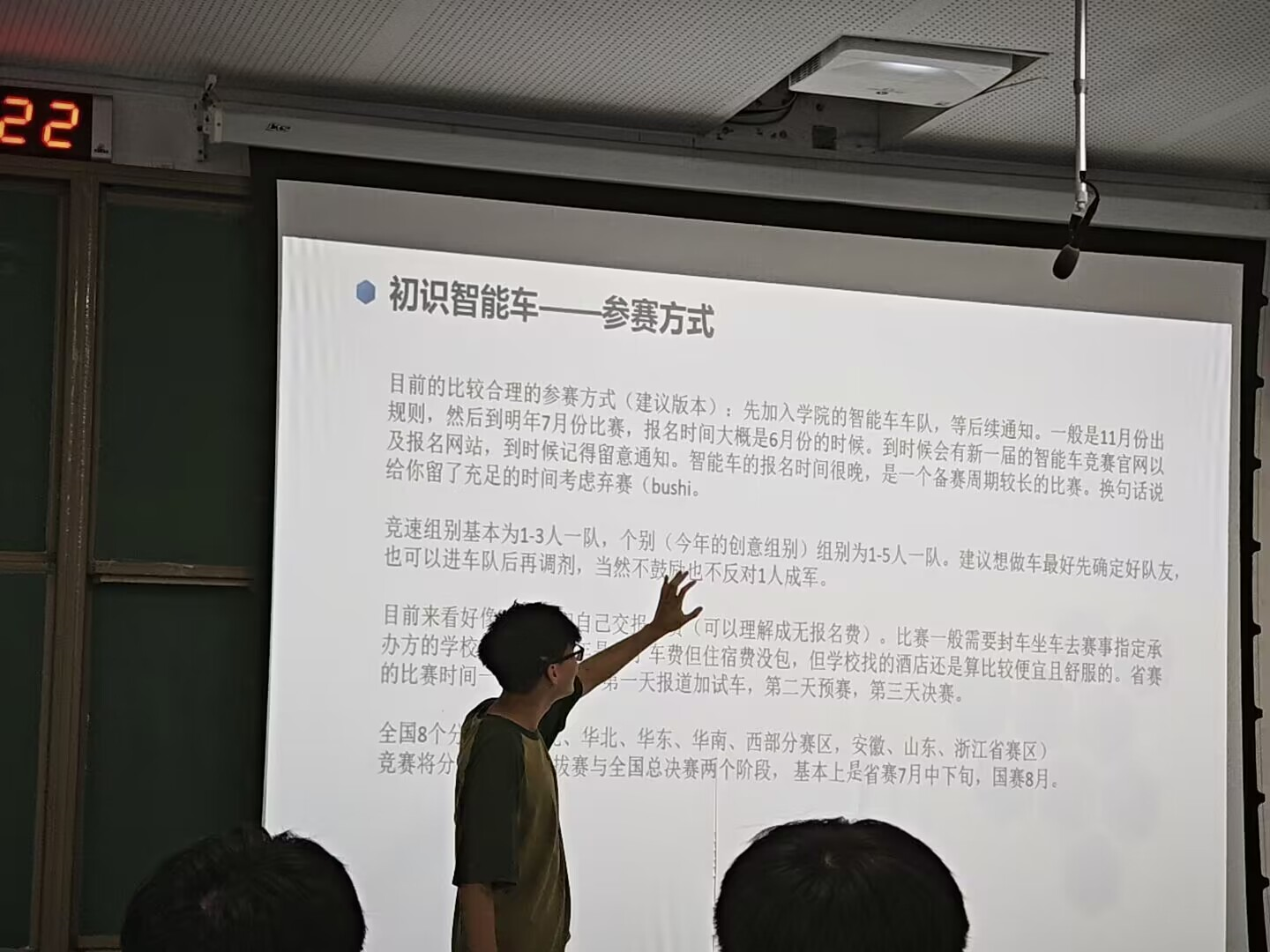 2024年9月8日,智能车汽车协会在J7-115成功举办了一场别开生面的宣讲活动。此次活动旨在向全校师生普及智能车竞赛的相关知识,激发更多学生对科技创新的兴趣和热情,同时吸引更多有志青年加入智能车竞赛的行列,共同探索科技的无限可能。