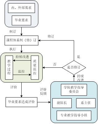 学院教学指导委员会是各专业课程体系制(修)订及合理性评价的组织机构,教学副院长是总协调人,各系主任是相应专业课程体系制(修)订及评价的直接责任人。
