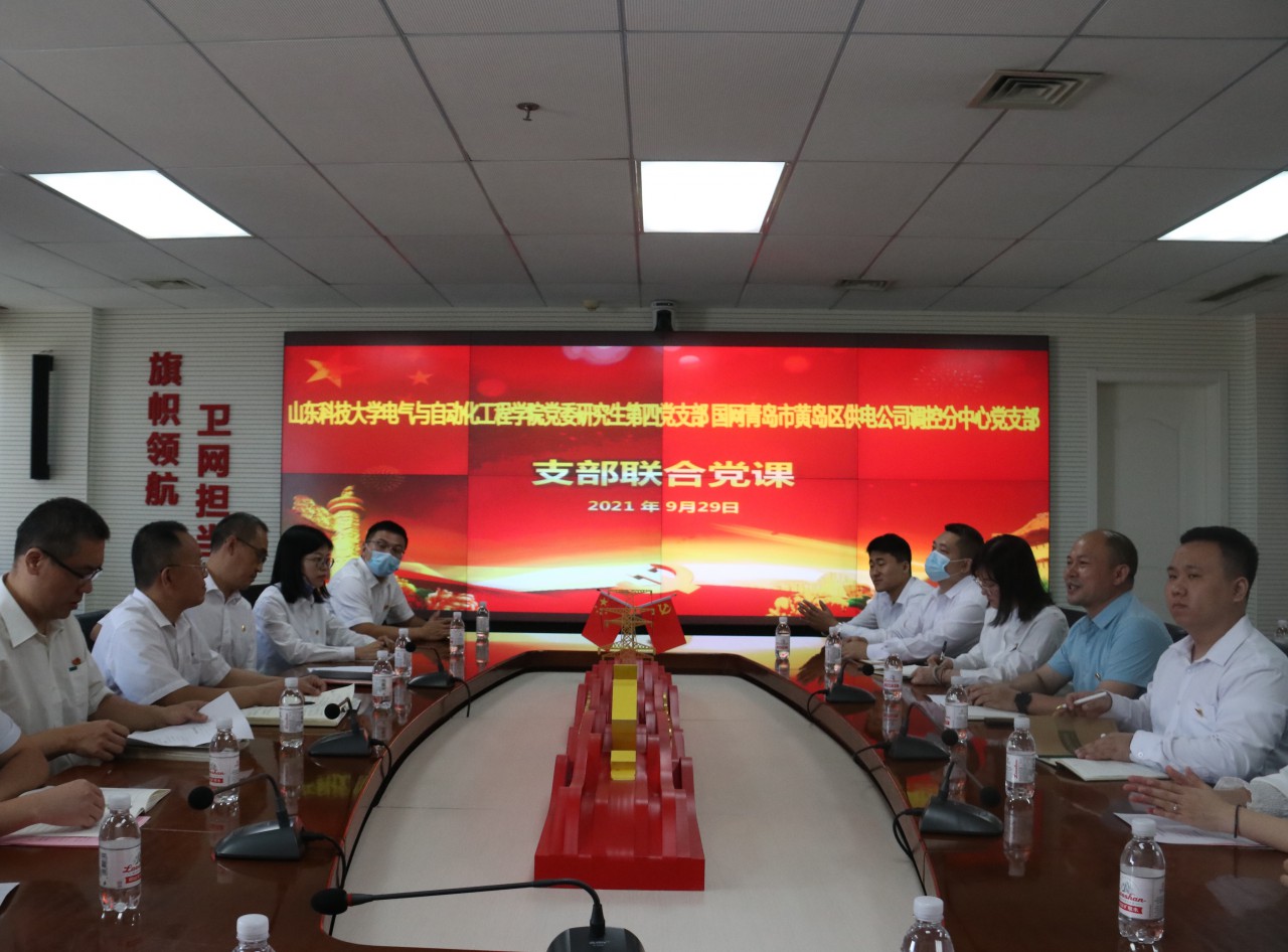 签约仪式结束后,beat365中文官方网站党委研究生第四党支部与国网青岛市黄岛区供电公司电力调度控制分中心党支部全体党员同上一节党课。beat365中文官方网站马克思主义学院孙绪民教授受邀做题为《弘扬伟大建党精神,担当民族复兴大任——学习习近平总书记在庆祝中国共产党成立100周年大会上的讲话》专题报告。
