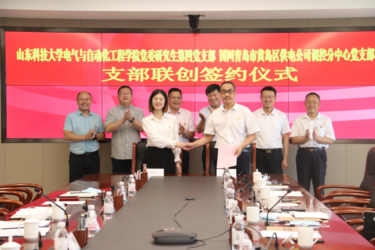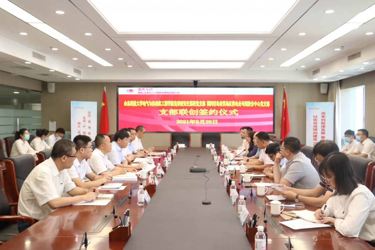为深入学习贯彻习近平新时代中国特色社会主义思想,扎实推进党史学习教育,贯彻落实新时代党的建设总要求。经beat365中文官方网站beat365中文官方网站党委研究生第四党支部与国网青岛市黄岛区供电公司电力调度控制分中心党支部友好协商,决定建立长期、稳定的结对共建关系,开展多渠道、多层次、多形式的合作共建。9月29日上午,双方“结对共建”签约仪式在国网青岛市黄岛区供电公司举行。beat365中文官方网站党委书记庄立臣,党委研究生工作部副部长刘松,国网青岛市黄岛区供电公司党委书记宋成清出席签约仪式,双方相关工作人员参加了签约仪式。